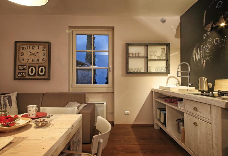 De agriturismo bestaat uit een kerkje, een oude pastoorswoning en een statige oude villa. Allemaal compleet verbouwd en voorzien van alle moderne gemakken en een bijzonder sfeervol interieur. Comfortabele zitbanken, moderne lampen, Smeg koelkast en mooie houten meubels. Drie kilometer hoger de berg op hebben ze ook nog een sfeervol vrijstaand huis bestaande uit 2 appartementen, verwarmd zwembad en spectaculair uitzicht op het meer. De eigenaar werkte voorheen voor Masserati, maar wilde na jaren van hectiek de rust van het platteland op zoeken. Hij is graag bereid tips te geven over de omgeving en op verzoek een mountainbike of Nordic Walking trip te begeleiden. Liefhebbers kunnen zich uiteraard ook vermaken op de prachtige golfbaan.