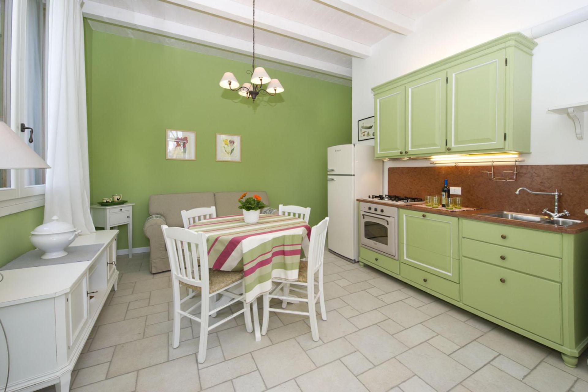 De agriturismo heeft in totaal vijf appartementen, drie op de begane grond en twee op de eerste verdieping gelegen. De appartementen op de begane grond hebben allemaal een eigen zitje in de tuin, met tafel, stoelen en pergola. De twee appartementen op de eerste verdieping hebben een mooi groot balkon/ terras met zicht op de tuin en het zwembad.