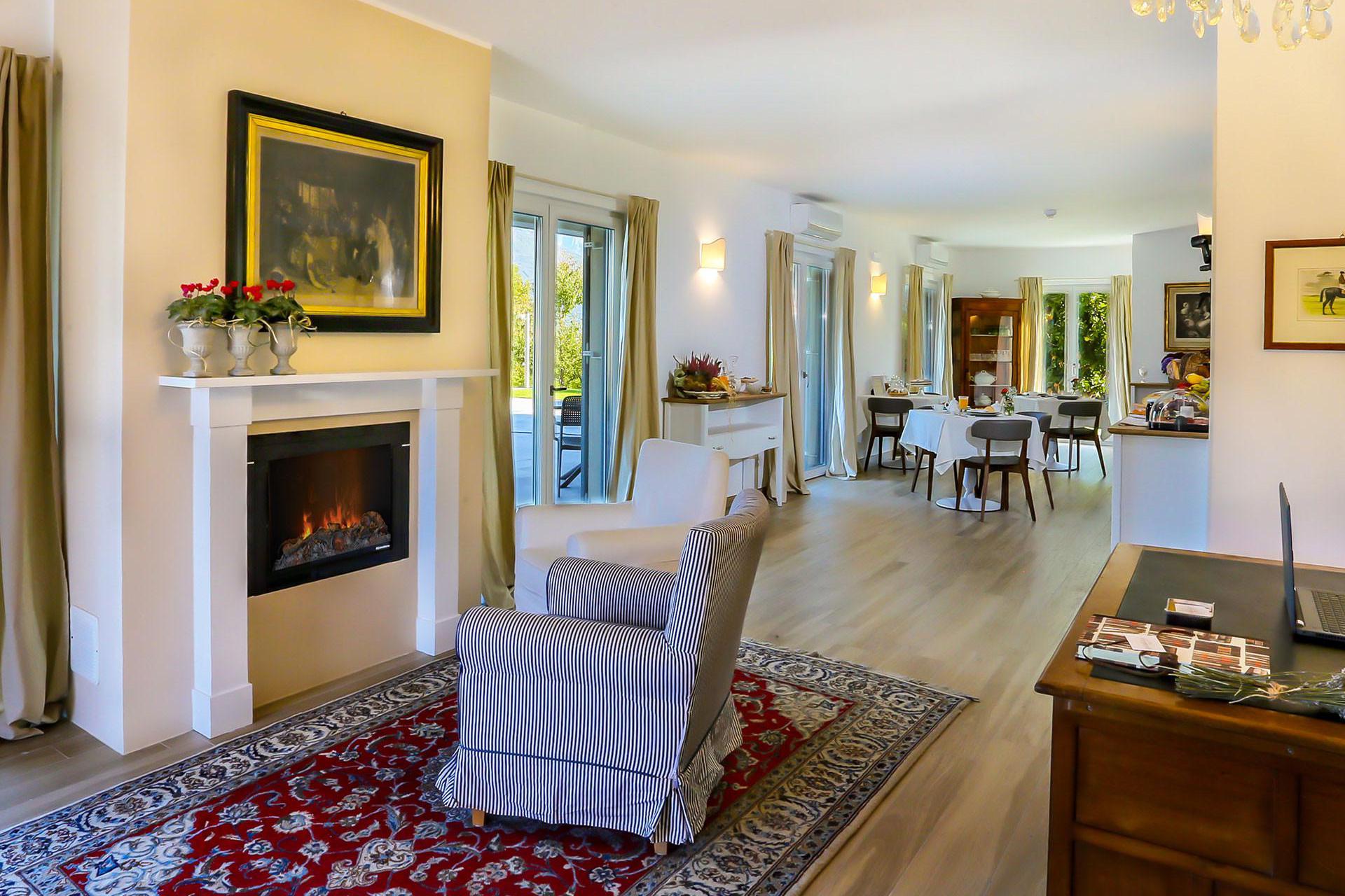De B&B heeft 5 kamers: 4 op de eerste verdieping en 1 op de begane grond en er is een appartement. De kamer op de begane grond heeft een terrasje met tafel en twee stoelen en toegang tot de tuin. De kamers op de eerste verdieping beschikken over een privé terras met uitzicht op het meer en de bergen. Het terras heeft een tafel en twee stoelen. De kamers hebben allemaal airco, Sky TV, minibar, safe en föhn. Er zijn twee kamers (een 2-persoons en een 3-persoons) met een tussendeur waardoor ze met elkaar in verbinding kunnen staan en daardoor ideaal voor een familie. Het is ook mogelijk om alle 5 kamers bij de B&B te huren voor een exclusief gebruik van het zwembad, de tuin, de ontbijtruimte en de woonkamer (niet de keuken).